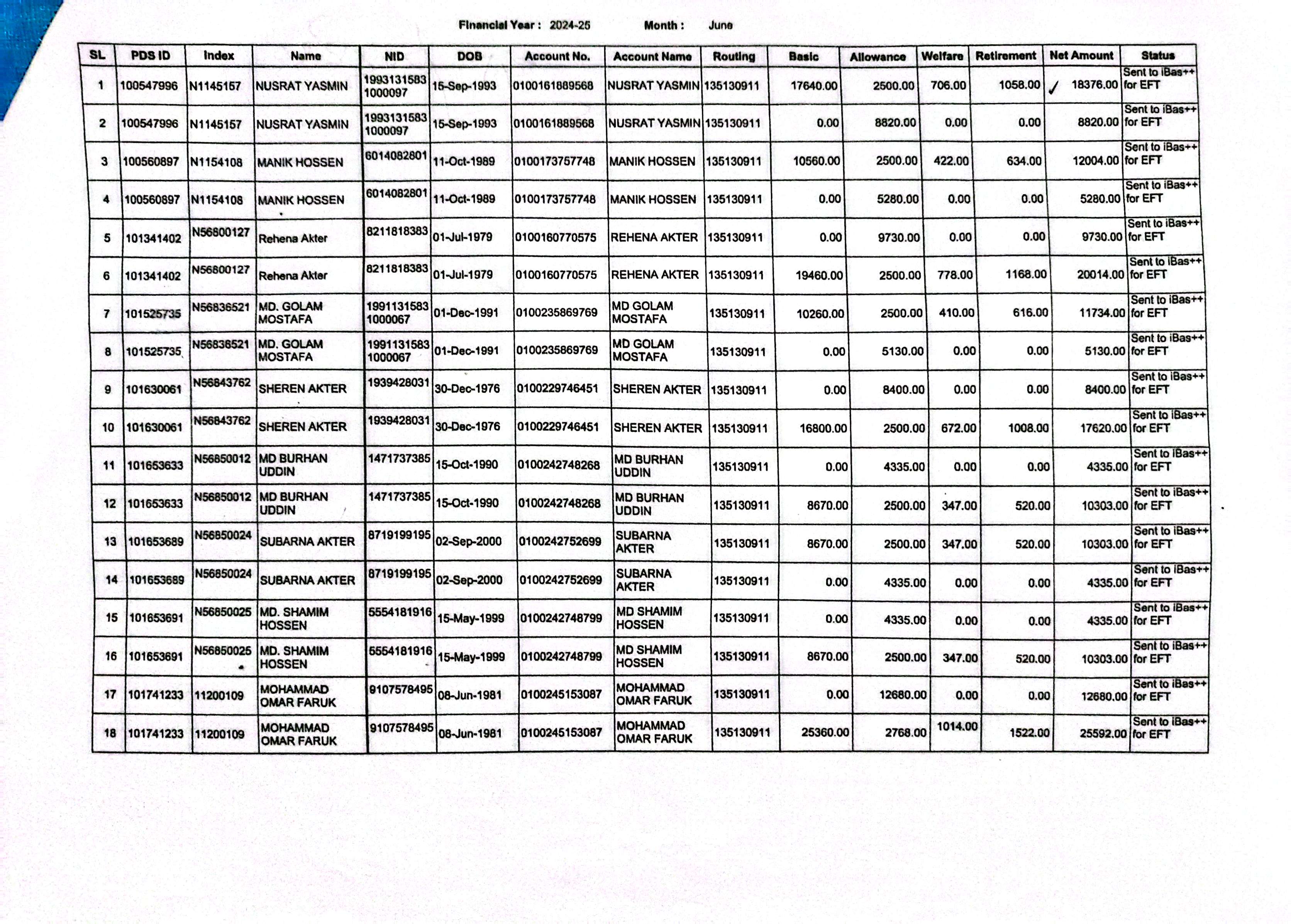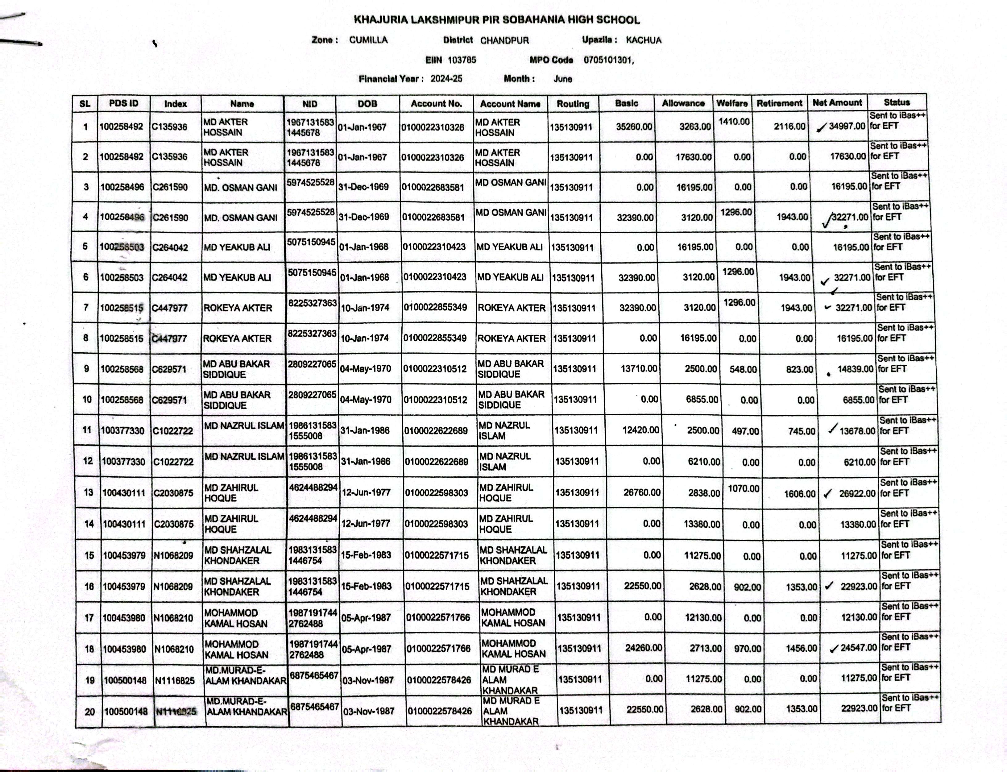 প্রতিষ্ঠানের এমপিও শীট